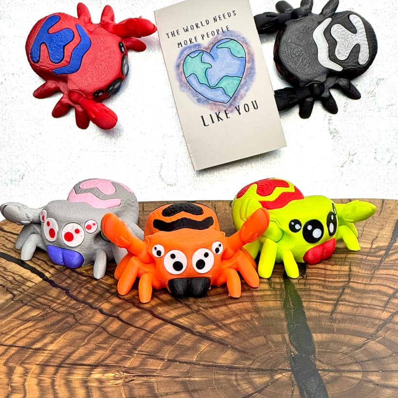 Magnetic messenger spiders are the perfect way to leave a little note for someone you love. A great pick me up for your day! These little cuties have magnetic bellies and posable pedipalps (arms) to hold cards, photos, or notes. Find us at our next market to build your own custom creature!